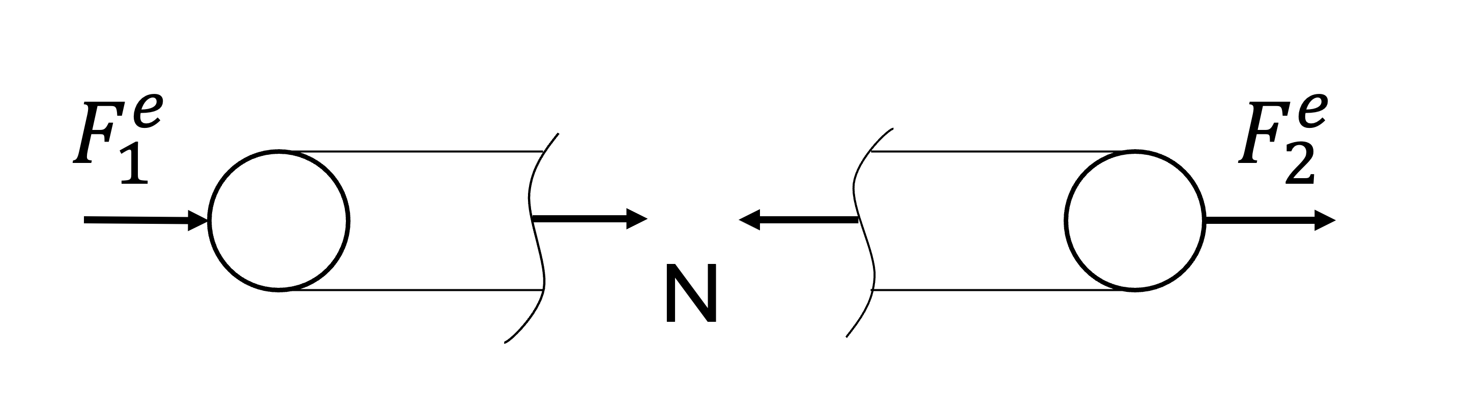 \begin{equation} F^e_1 = -F^e_2 \end{equation}