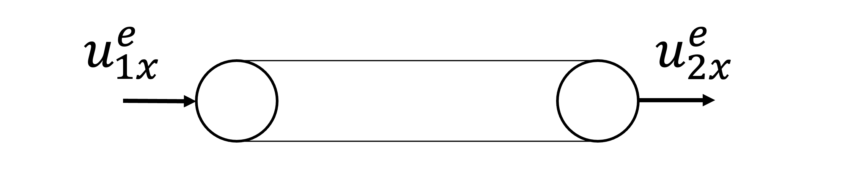 \begin{equation} F^e_2 = N = k^e \Delta l^e = k^e (u^ e_2 - u^ e_1 ) = k^e u^ e_2 - k^e u^ e_1 \end{equation}
